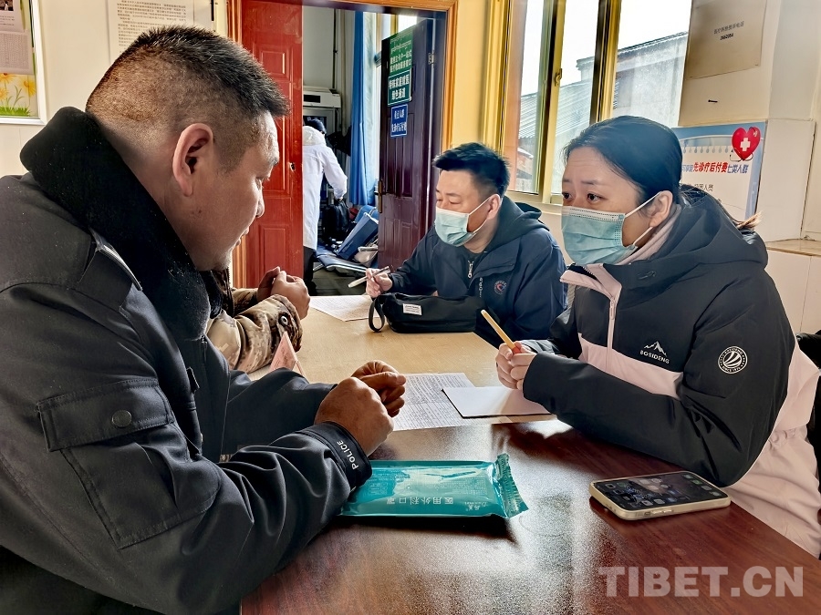圖為當?shù)蒯t(yī)護人員為群眾現(xiàn)場翻譯 攝影:賈春玲