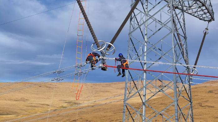 圖為國(guó)網(wǎng)西藏電力工作人員開展巡視巡檢工作