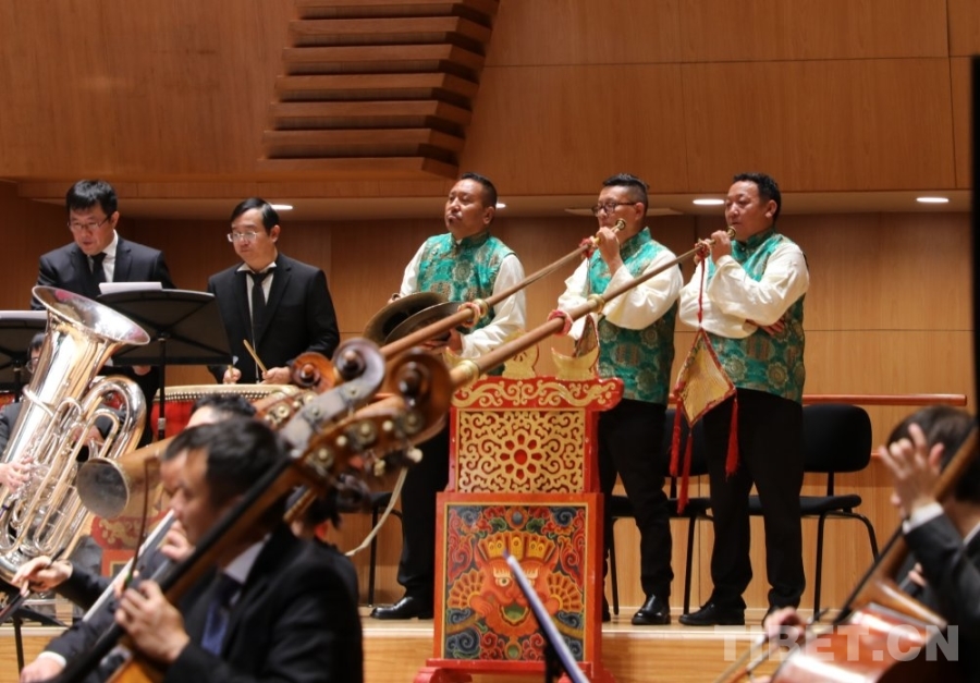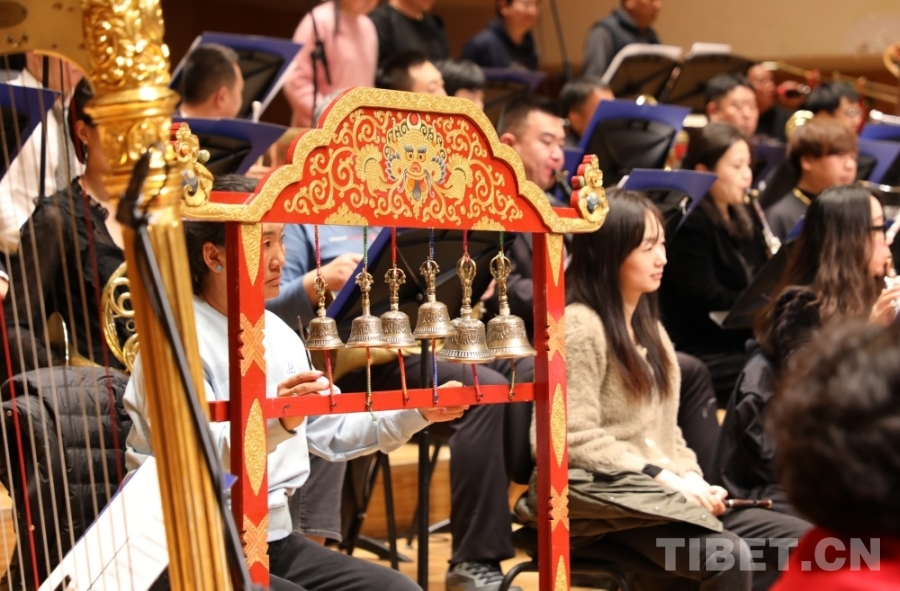 “我們交響樂(lè)當(dāng)中使用了不少民族樂(lè)器,有藏族的傳統(tǒng)樂(lè)器藏大號(hào)、藏鈸、扎木念、赤布(藏鈴),也有二胡、鼓、笛等等,這也使得作品跟其他樂(lè)團(tuán)不一樣。”尼瑪說(shuō),“交響樂(lè)有了民族樂(lè)器的加入,這種中西結(jié)合讓作品國(guó)際范兒中有了民族風(fēng)味,這也是我們所做的一些創(chuàng)新和融合,也展現(xiàn)了西藏音樂(lè)特有的魅力。”