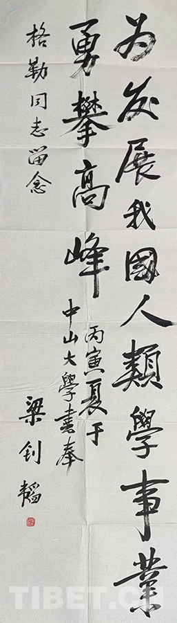 這次我給中大捐贈(zèng)了珍藏已久的梁先生為我題寫的畢業(yè)贈(zèng)言。他要我為發(fā)展我國(guó)人類學(xué)事業(yè)勇攀高峰,我知道以我的能力和年齡,今生不一定能攀登高峰,但我依然在努力,依然在奮斗。近二十多年來(lái),我在一些大專院校兼任博士生導(dǎo)師,為培養(yǎng)中國(guó)馬克思主義藏學(xué)家和人類學(xué)家而辛勤耕耘,尤其是2011年從行政崗位退下來(lái)以后,我已經(jīng)全身心地投入到培養(yǎng)中國(guó)藏學(xué)和人類學(xué)接班人的教學(xué)工作中,不辜負(fù)梁釗韜導(dǎo)師的贈(zèng)言和中大領(lǐng)導(dǎo)以及人類學(xué)老師們期望,為中國(guó)藏學(xué)和人類學(xué)的發(fā)展發(fā)揮余熱,我樂此不疲。至少我要對(duì)得起榮獲的兩個(gè)“第一”的光環(huán)吧。(中國(guó)西藏網(wǎng) 文/格勒 圖片均為作者提供)