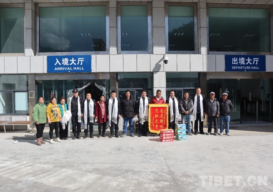 圖為口岸游客為聶拉木邊防檢查站民警送上錦旗