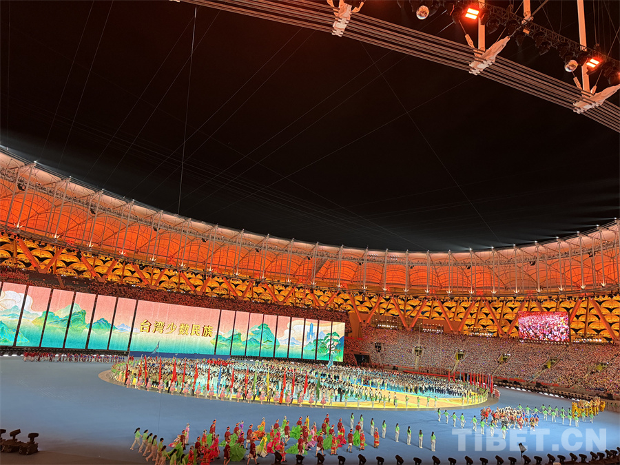 圖為臺(tái)灣少數(shù)民族代表團(tuán)在開幕式上入場 攝影:蘇洋