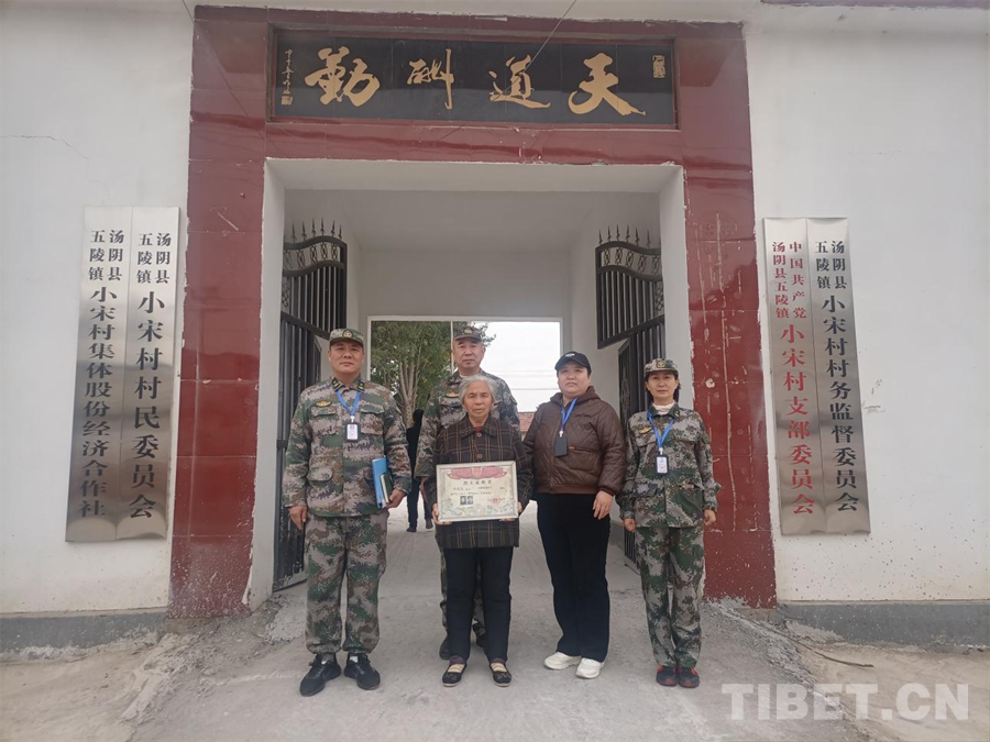 圖為“我為烈士來(lái)尋親”“安陽(yáng)市退役軍人長(zhǎng)城志愿服務(wù)總隊(duì)”烈士尋親工作組與申克玉烈士親屬合影