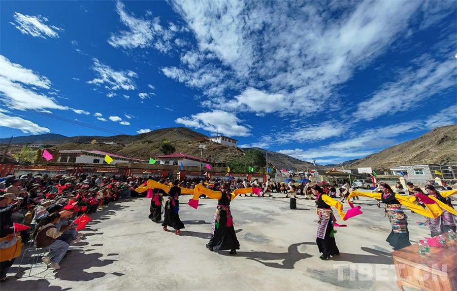 圖為洛隆縣碩督鎮(zhèn)民族團(tuán)結(jié)廣場(chǎng)開(kāi)展紀(jì)念洛隆解放74周年文藝表演活動(dòng)