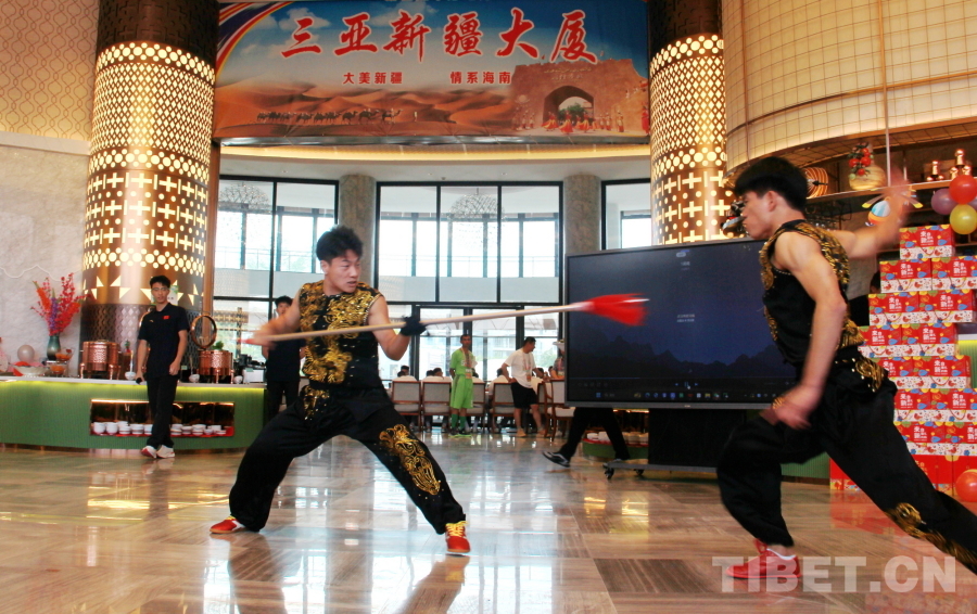 中國西藏網(wǎng)訊 精彩的傳統(tǒng)武術(shù)、悠揚的歌聲、優(yōu)美的舞蹈……一陣陣掌聲、笑聲、歡呼聲從新疆代表團駐地海南三亞新疆大廈傳出。11月27日,新疆代表團邀請湖南、云南、黑龍江代表團來到駐地舉行主題為“交各民族好朋友”的聯(lián)誼活動。