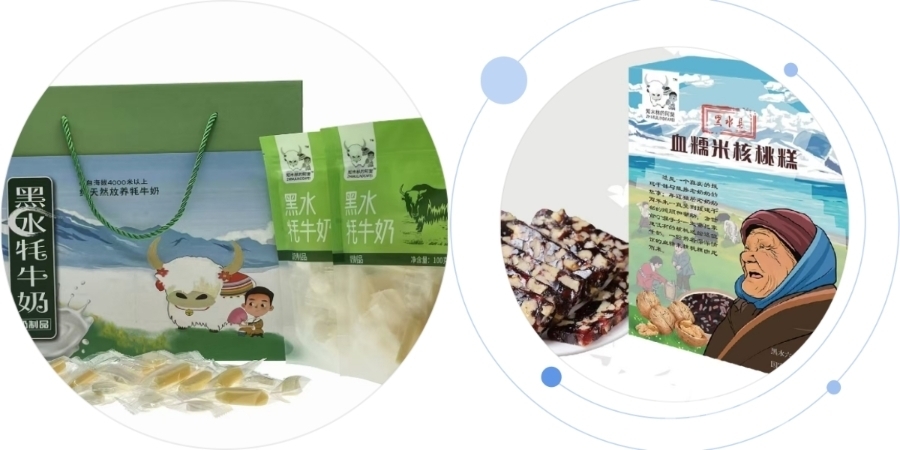 有了加工企業(yè)的支持,楊斐開始著手打造“阿斐牌”黑水牦牛奶條奶片和“阿斐牌”血糯米核桃糕。他發(fā)揮自己的設(shè)計(jì)專長,為這些產(chǎn)品打造了獨(dú)特的品牌形象。同時(shí),他還聯(lián)系了東西部對口援建黑水的國企,爭取到了后續(xù)的產(chǎn)業(yè)投入。