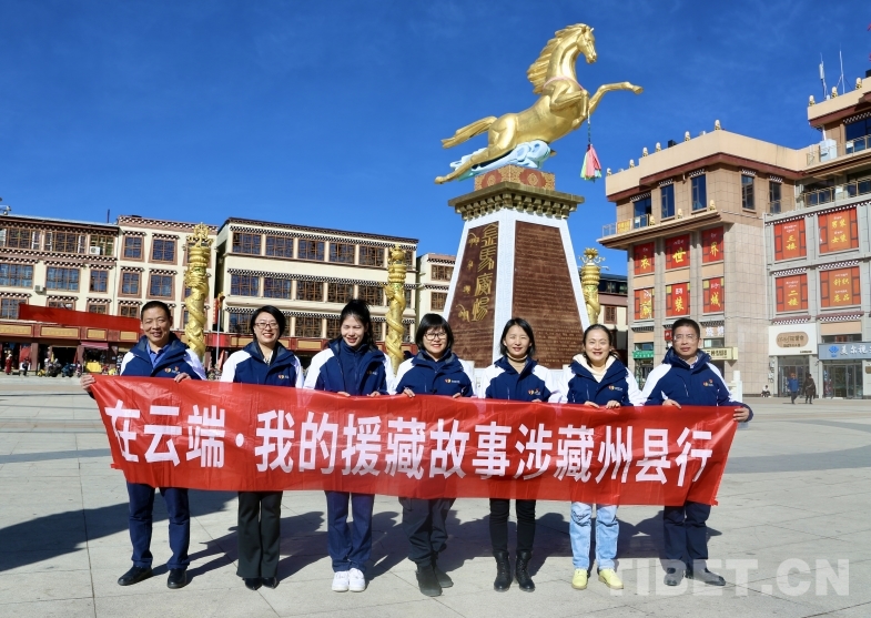 圖為宣講團(tuán)援藏干部代表在色達(dá)縣金馬廣場(chǎng)合影留念 攝影:龍真多吉