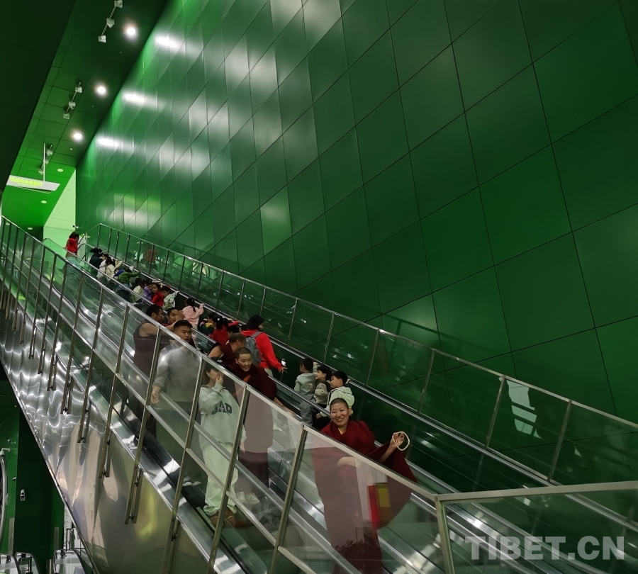 當(dāng)日下午,西藏佛學(xué)院一行來到中國科學(xué)技術(shù)館參觀學(xué)習(xí)。走進(jìn)展廳,師生們立即被展陳的航天器材吸引,紛紛上前合影留念??萍拣^內(nèi)有很多孩子正在參觀,部分外向的孩子熱情地與西藏佛學(xué)院師生們打招呼,師生們也歡喜地回應(yīng)著。雙向扶梯上,孩子們熱情洋溢地上行,恰逢佛學(xué)院的師生們下行,彼此擦肩而過、揮手示意。