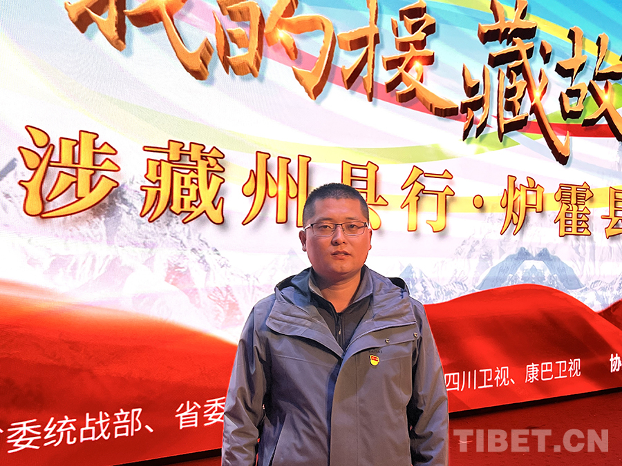 圖為爐霍縣教體局副局長(zhǎng)、成都市鹽道街中學(xué)教師董亞偉接受記者采訪 攝影:龍真多吉
