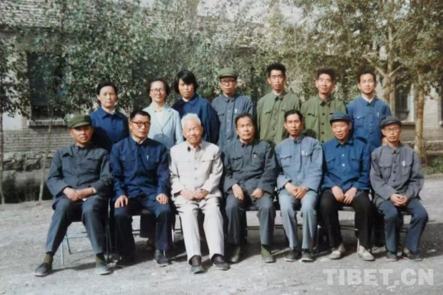 圖為1982年慕生忠將軍(前排左三)在格爾木農(nóng)場(chǎng)總廠視察合影 受訪者供圖