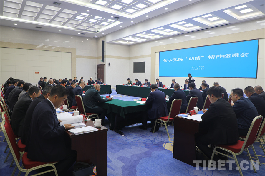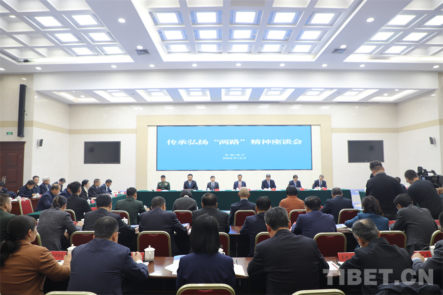 圖為青海西寧召開的傳承弘揚“兩路”精神座談會現(xiàn)場攝影:王妍丹