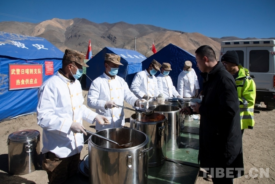 中國(guó)西藏網(wǎng)訊 “兩位同志,吃口飯?jiān)倮^續(xù)出發(fā)吧!”在西藏日喀則市定日縣長(zhǎng)所鄉(xiāng)森嘎村受災(zāi)群眾安置點(diǎn)現(xiàn)場(chǎng),我們被正在向受災(zāi)群眾供應(yīng)熱食的武警日喀則支隊(duì)官兵喊著停下了腳步。雖然已過(guò)午飯時(shí)間,但救援官兵們依然在不間斷供應(yīng)午飯,他們?cè)噲D喊下每一位正在救援現(xiàn)場(chǎng)忙碌的工作人員,想讓他們歇一歇,吃飽肚子再干活。