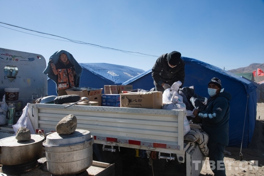 圖為森嘎村受災(zāi)安置點(diǎn)群眾正在盤(pán)點(diǎn)家中物資 攝影:趙振宇
