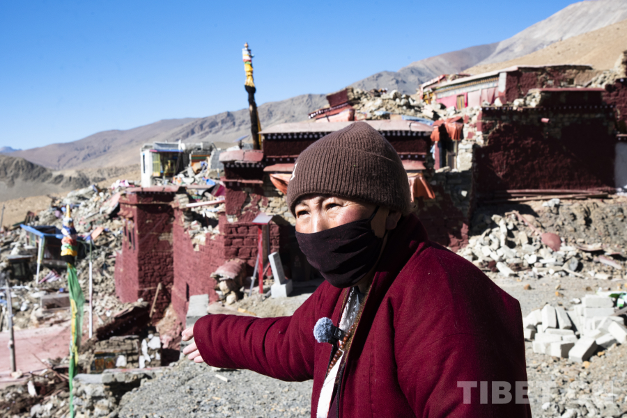 “我們的寺廟受損非常嚴重,感覺像是整座建筑都坍塌了下來,當時被壓在下面非常害怕,還好只是受到了輕微的傷害?!蔽挥诎肷窖系淖诓妓率且蛔?00多年歷史的尼姑寺,旦增曲宗至今回憶起當時地震時的場景仍然感到害怕。
