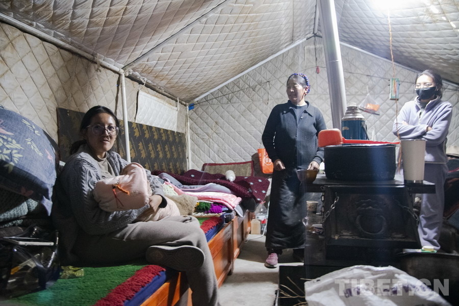 “地震是9點多鐘發(fā)生的,12點鐘我們就已經(jīng)搭建好了帳篷讓次央家住了進(jìn)去,可以說她是全村第一個住進(jìn)帳篷的人??紤]到孩子剛剛出生,我們緊急調(diào)運來火爐,讓次央家中第一個升起爐火取暖?!边_(dá)娃白珍說地震發(fā)生后,村兩委及駐村工作隊干部第一時間趕往平時關(guān)照的特殊群眾家中,優(yōu)先幫助他們解決地震后遇到的困難。