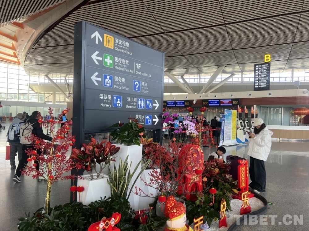 中國西藏網(wǎng)訊 新春的樂章即將奏響,拉薩貢嘎國際機場盛裝以待,用別出心裁的春節(jié)景觀設計,為過往旅客呈上一場充滿新意的新春盛宴,讓節(jié)日的喜慶在旅途中盡情流淌。(中國西藏網(wǎng) 記者/趙振宇)