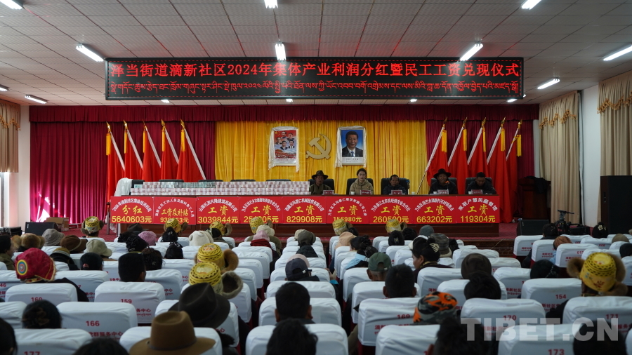 圖為西藏自治區(qū)山南市澤當(dāng)街道滴新社區(qū)2024年集體產(chǎn)業(yè)利潤分紅暨民工工資兌現(xiàn)儀式現(xiàn)場