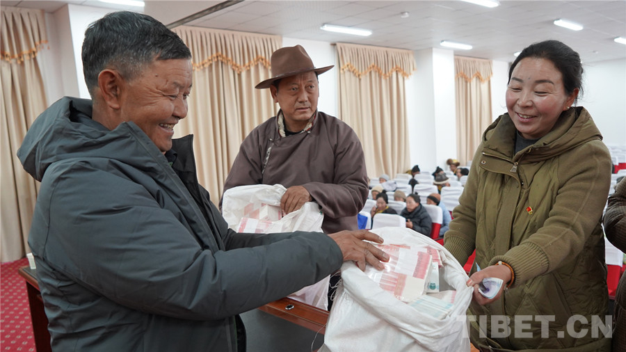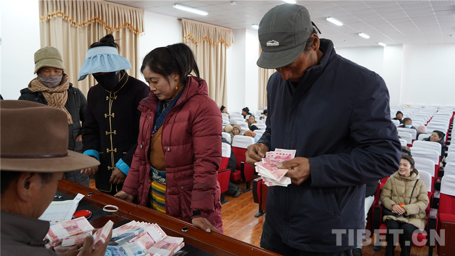 中國西藏網(wǎng)訊 2月11日,在西藏自治區(qū)山南市澤當(dāng)街道辦事處滴新社區(qū)居民委員會會議室里,一片人聲鼎沸、熱火朝天的景象,2024年滴新集體產(chǎn)業(yè)利潤分紅暨民工工資兌現(xiàn)儀式正在這里舉行。