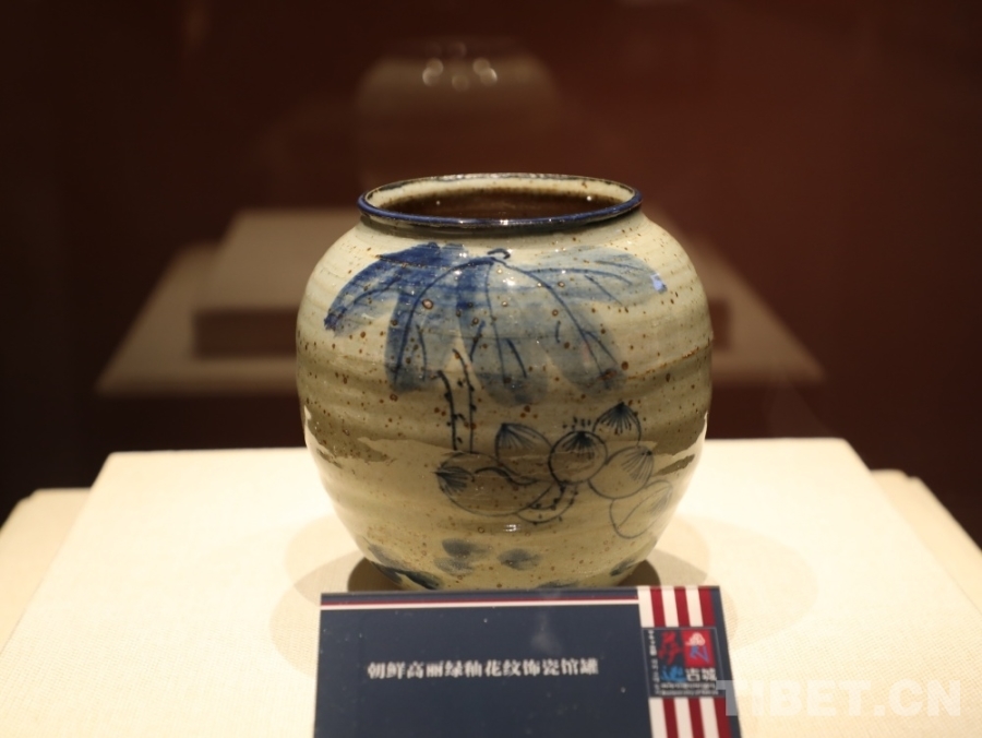 圖為朝鮮高麗綠釉花紋飾瓷館罐(復(fù)制品) 攝影:王茜