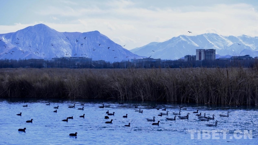 圖為在拉魯濕地湖泊中覓食嬉戲的鴨群 攝影:德吉卓瑪