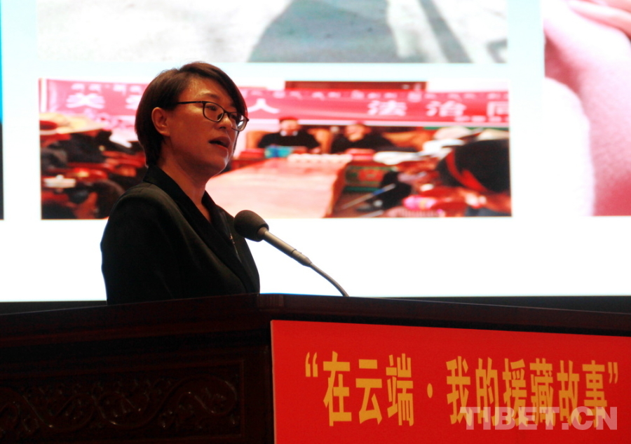 圖為攀枝花市農(nóng)業(yè)農(nóng)村局干部揚(yáng)秀英講述該局黨組成員、副局長(zhǎng)寧秀蓉的援藏故事 攝影:劉莉