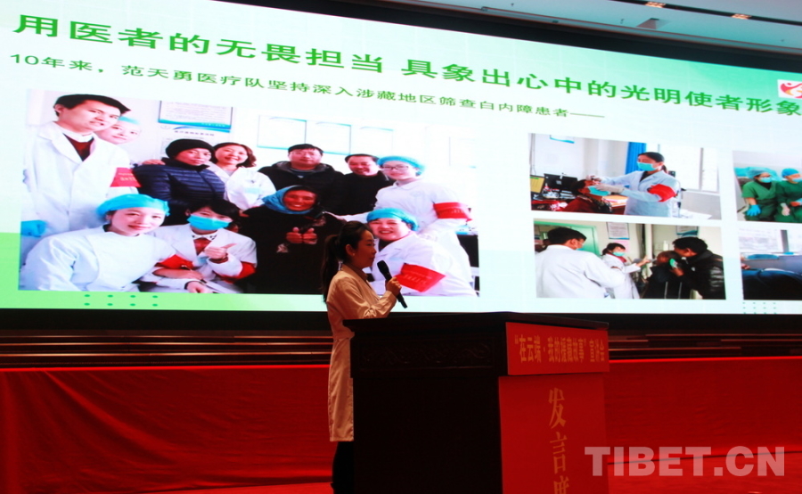 圖為德陽(yáng)市人民醫(yī)院宣傳部干事彭曉萌講述該院“范天勇援藏醫(yī)療服務(wù)隊(duì)”的援藏故事 攝影:劉莉