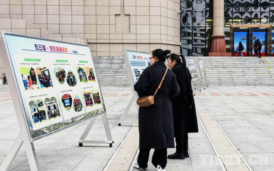 圖為“在云端·我的援藏故事”宣傳活動(dòng)場(chǎng)外,行人正在觀看展板 攝影:劉莉
