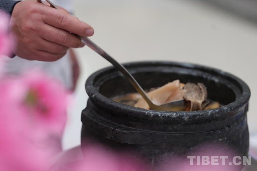 圖為推介會現(xiàn)場可以品嘗的魯朗石鍋雞 攝影:德吉卓瑪
