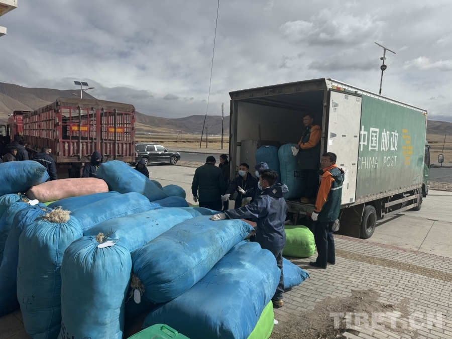 圖為治多縣牛羊絨毛正在裝車運(yùn)往拉薩