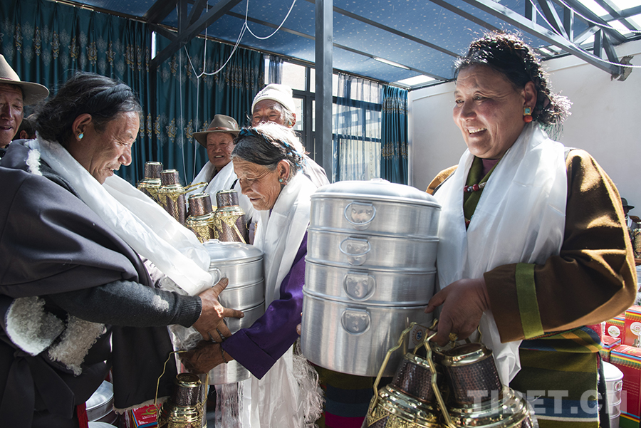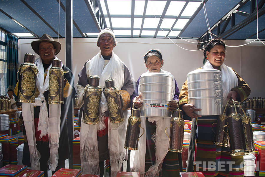 “因受地震的影響,今年的分紅儀式與以往相比簡單一些。我們村兩委經(jīng)過商議,決定用今年的村集體收入為每戶購置多功能蒸鍋、銅壺等作為‘分紅’。一方面,因為大家現(xiàn)在都在安置板房里生活,這些物品對于村民來說實用性更強(qiáng);另一方面,銅壺也有一定的裝飾作用,為村民簡單的板房內(nèi)增添了一份像樣的‘家具’?!贝妩h支部書記旺加布說。