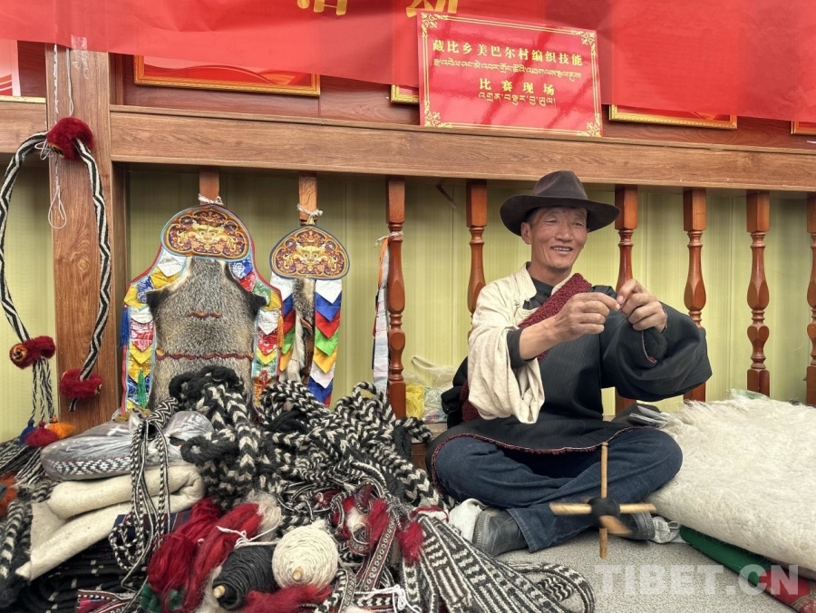 圖為藏比鄉(xiāng)美巴爾村編織技能比賽現(xiàn)場