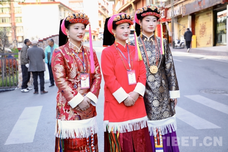 圖為身著當(dāng)?shù)孛褡宸椀墓ぷ魅藛T 攝影:龍真多吉