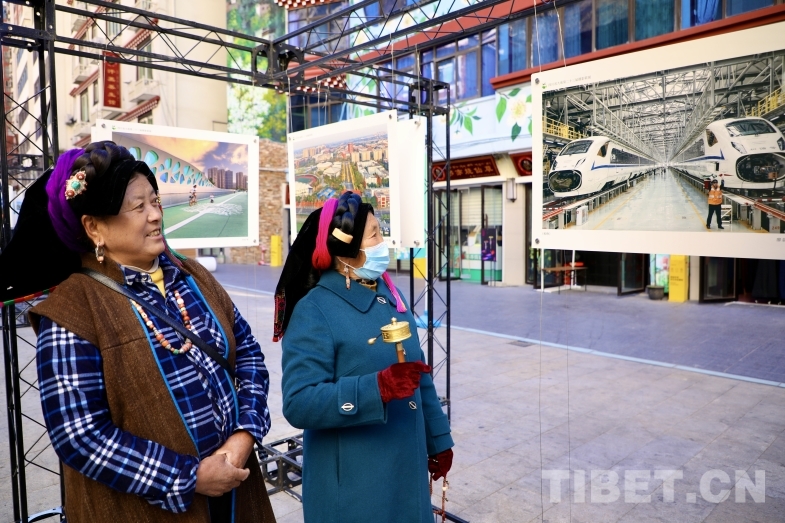 圖為當(dāng)?shù)厝罕娪^看攝影作品 攝影:龍真多吉