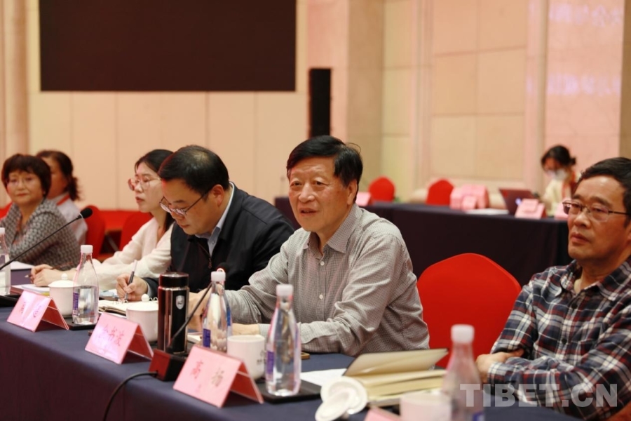 圖為北京建藏援藏工作者協(xié)會(huì)會(huì)長(zhǎng)金書波(前排右二)發(fā)言 攝影:劉莉