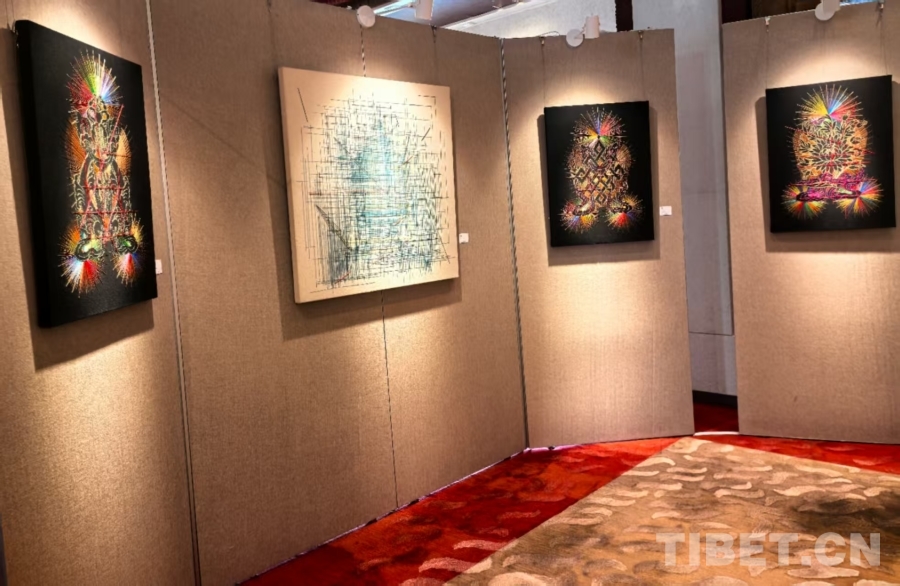 圖為5月2日至8日舉行的“三國同框 四季如畫 五彩亞東——亞東縣文化交流及特色產(chǎn)品展銷活動”上索喃次仁的作品展區(qū) 攝影:王淑