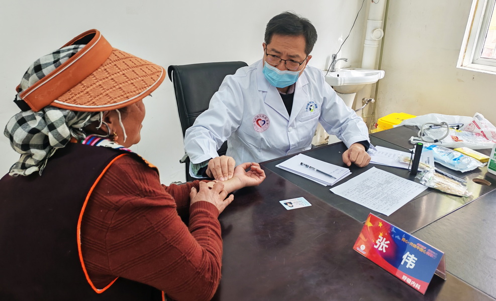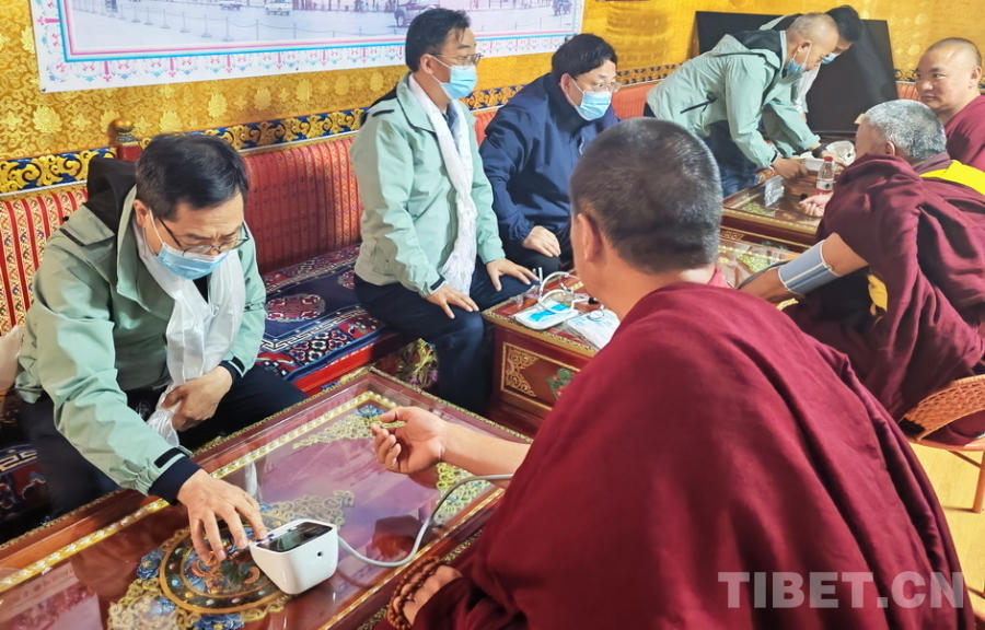 除在沙爾宗鎮(zhèn)衛(wèi)生院設(shè)立固定義診點,醫(yī)療專家們還深入鄉(xiāng)村,為行動不便的老人等進行入戶慰問巡診;來到大藏寺,為寺內(nèi)僧人送醫(yī)送藥。