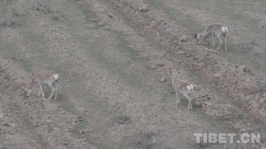 圖為無人機(jī)捕捉到的珍貴的野生普式原羚影像,它們的夏季被毛呈棕黃色,可以較好地融入周邊環(huán)境,同時(shí)性格警覺,對(duì)風(fēng)吹草動(dòng)都很敏感 青海省文旅廳供圖