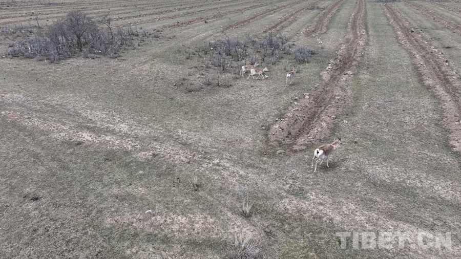 圖為無人機(jī)捕捉到的珍貴的野生普式原羚影像,奔跑時(shí),尾部標(biāo)志性的“心形白斑”清晰可見 青海省文旅廳供圖