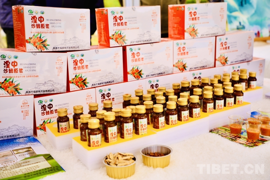 圖為當?shù)氐奶厣r產品“沙棘原漿” 攝影:龍真多吉