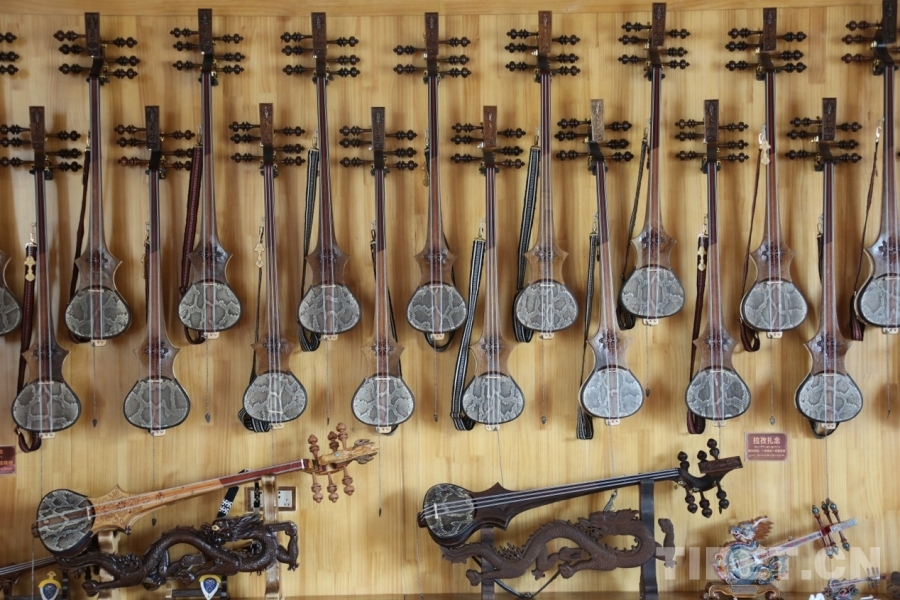 作為“堆諧之鄉(xiāng)”拉孜縣的代表性樂器,扎念琴制作已有數(shù)百年歷史。合作社負(fù)責(zé)人頓加介紹,一把純手工扎念琴需選用楊木做共鳴箱、花梨木制琴桿,經(jīng)過刨削、雕鏤、蒙皮等20余道工序,一個人耗時6天左右方能完成?!扒兕^雕馬象征吉祥,背面‘巴絡(luò)'凸紋既美觀又防滑,這些都是祖輩傳下的智慧。”如今,這項非遺技藝通過“致富帶頭人+合作社+農(nóng)戶”模式,年生產(chǎn)扎念琴超500把,帶動社員人均年收入達(dá)4.5萬元。