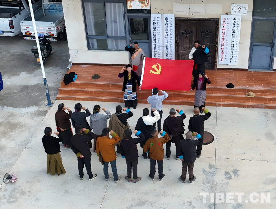 圖為崗巴村黨員重溫入黨誓詞 攝影:達(dá)娃