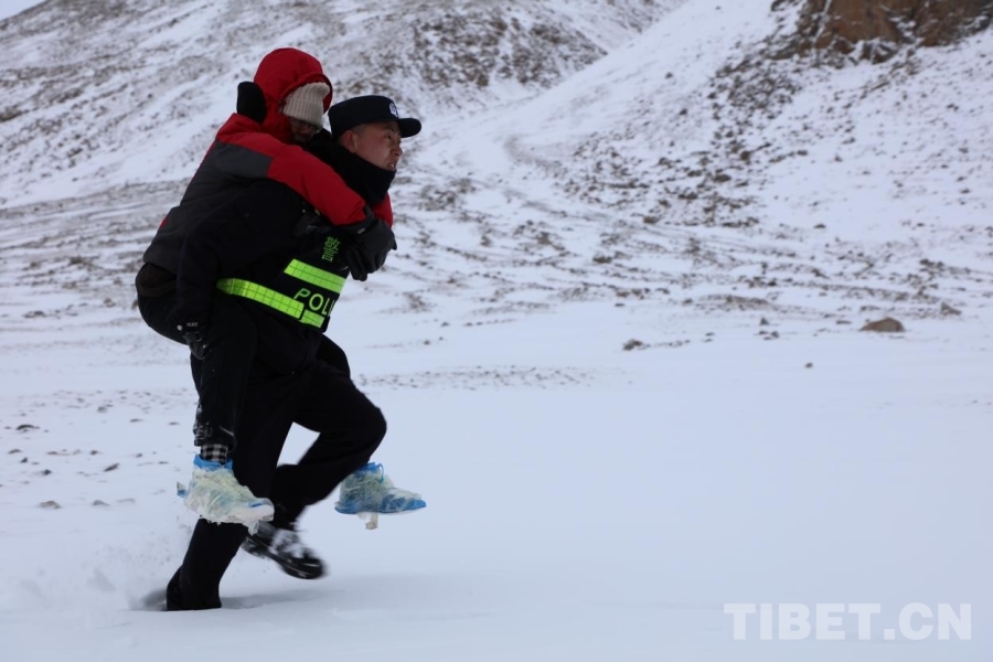 圖為塔爾欽邊境派出所民警在雪中實施救援受訪者供圖