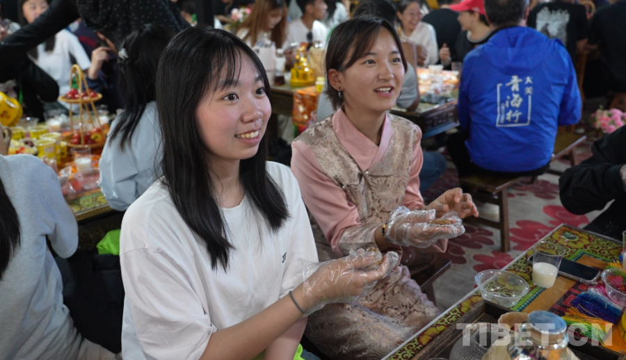 “讓孩子們交朋友、多交流?!边@也是青海省政協(xié)常委、本次研學(xué)團(tuán)團(tuán)長吳漢忠最初的想法。在位于海晏縣的文迦牧場的星空下,這場“廣度”之旅迎來溫暖篇章。海北藏族自治州的青少年與香港青少年們圍坐在一起,手把手教香港的朋友制作糌粑,還熱情招呼大家喝奶茶、跳鍋莊,自豪地介紹起自家草原上的牛羊?!棒佤尉褪且檬诌@樣順時(shí)針或者逆時(shí)針揉搓,最后成團(tuán),就能吃啦。還可以蘸一蘸我們的奶茶再吃?!毕愀蹖W(xué)生們也積極回應(yīng)著,相互用“扎西德勒”打著招呼,吃著親手制作的糌粑。有人驚喜發(fā)現(xiàn)“這個(gè)糌粑味道好像我家鄉(xiāng)的芝麻糖啊,好香好甜”。