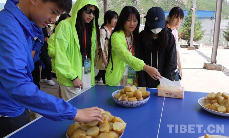 圖為香港學(xué)生參觀青海省馬鈴薯高山試驗(yàn)站馬鈴薯資源創(chuàng)新室 攝影:王茜