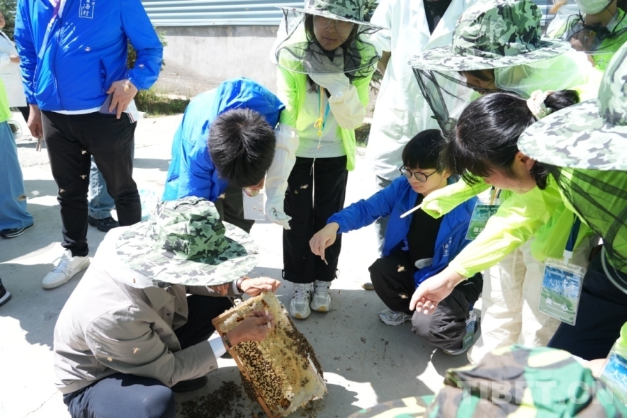 圖為香港學(xué)生在青海青藏華峰中蜂蜂業(yè)有限公司品嘗新鮮的蜂蜜 攝影:王茜