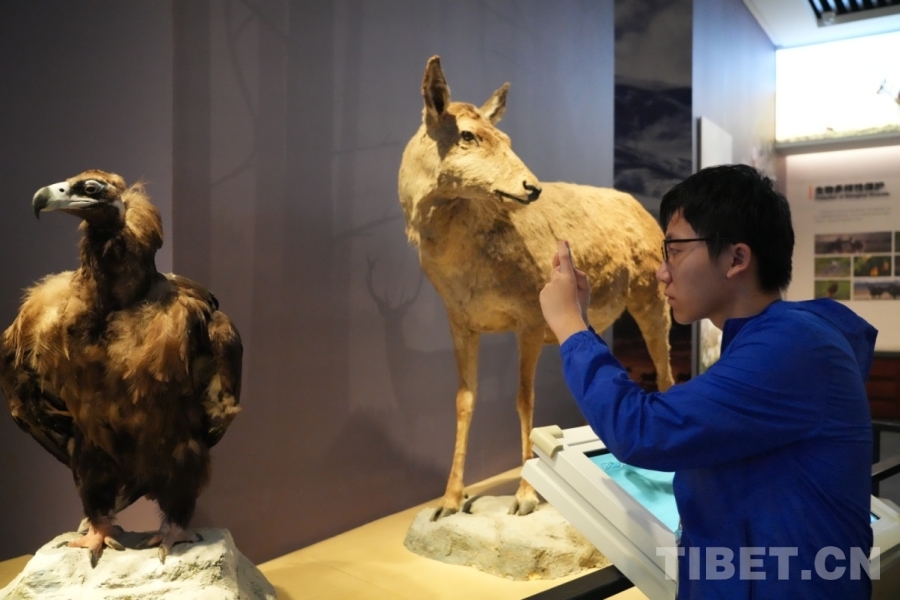 圖為香港學(xué)生黃天桃在青海省自然資源博物館里拍攝標(biāo)本 攝影:王茜