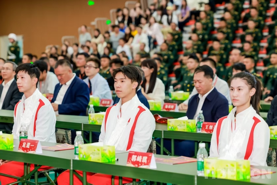 宣講中,黃雨婷、陳清晨和馬龍帶著賽場內(nèi)外的赤誠與感悟,結合各自成長軌跡與拼搏故事,同官兵們真誠交流、共鳴心聲。他們聊起訓練場上與傷病斗爭的汗水、突破瓶頸時的堅持,話及賽場決勝瞬間的緊張與突破自我的暢快,更分享了身披國旗時的初心與為國爭光的榮光?;迎h(huán)節(jié)里,官兵們踴躍提問,從“如何和隊友保持默契”到“怎樣保持冷靜”,奧運冠軍們一一作答,現(xiàn)場氣氛熱烈。潘展樂、張雨霏也特意通過視頻向官兵們致以誠摯問候,鼓勵大家在各自的賽場上奮勇拼搏,綻放最好的自己。