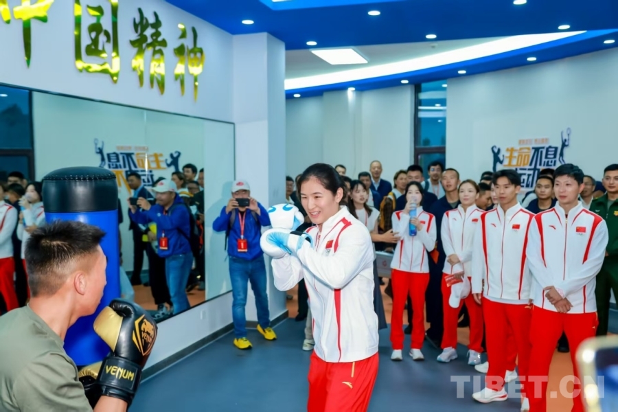 當天下午,奧運冠軍一行來到西藏軍區(qū)某部,與軍區(qū)官兵互動交流,共話拼搏歲月,共敘家國情懷。