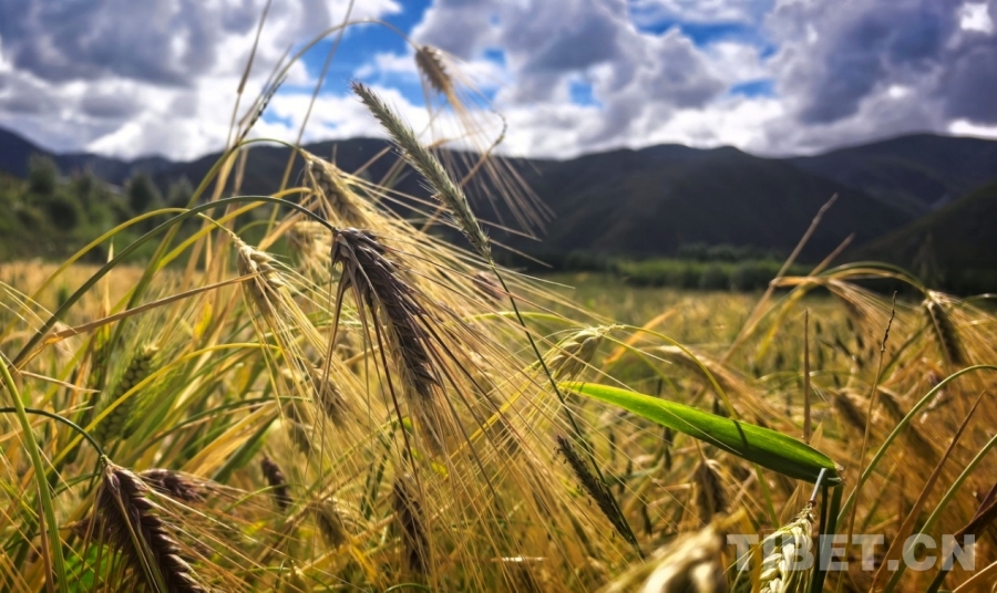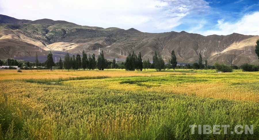 圖為強(qiáng)吉村正在大面積成熟的青稞 攝影:劉莉