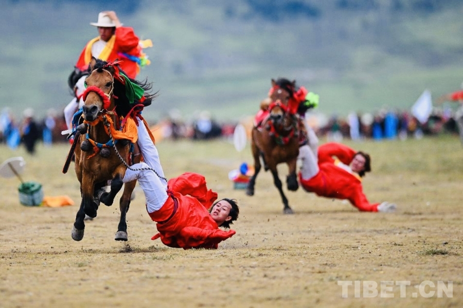 7月31日,上午的“騎馬拾哈達(dá)”比賽中,騎手們高速奔馳中精準(zhǔn)俯身,靈巧地將散落的哈達(dá)一一掠起。下午的“新(老)呷糾賽”將氣氛推向高潮,騎手們在馬背上完成各種高難度平衡動作,力量與柔韌的極致結(jié)合引得觀眾陣陣驚呼?!斑@是我們祖輩傳下來的本事,看到年輕人練得這么好,心里高興!”觀賽的藏族村民扎西多吉臉上笑開了花。